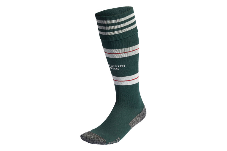 Ondersteunende Man Utd sokken in de uitkleuren, gemaakt met gerecycled materiaal.