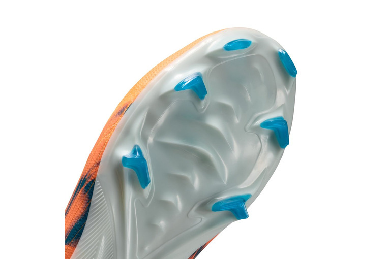 Het golfachtige grippatroon bestaat uit een reeks trapsgewijze noppen die een groter oppervlak van de Air Zoom unit innemen en tegelijkertijd de juiste hoeveelheid grip bieden. De grootste noppen zijn even hoog als onze traditionele middelste noppen, dus de grip blijft behouden. We hebben de golfachtige grip gecombineerd met vernieuwde v-vormige noppen en blade-noppen zodat je kunt stoppen bij snelle wendingen.