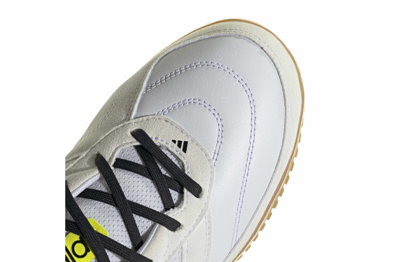 Stap vol vertrouwen het indoorveld op in de Top Sala Competition II zaalvoetbalschoenen. Deze kicksen zijn gemaakt voor iedereen die voor voetbal leeft en ontworpen om je spel met precisie en stijl te verbeteren. Ervaar het comfort van een tong van mesh met extra voering, die je voeten helpt gedempt te voelen tijdens intense wedstrijden. De voorvoet van kwaliteitsleer zorgt voor een zachte touch en stabiele controle, zodat je jouw bewegingen met gemak kunt beheersen. De lichtgewicht EVA-middenzool levert flexibiliteit en demping onder de voet, wat helpt om je stappen bijna moeiteloos te laten aanvoelen. En met een rubberen non-marking loopzool geniet jij van betrouwbare tractie op indoorvloeren, wat je helpt je wendbaar en snel te voelen. adidas zet innovatie op de voorgrond met deze prestatiegerichte schoenen, waarin traditie wordt gecombineerd met moderne technologie. Of je nu doelpunten maakt of je domein verdedigt, deze schoenen zijn je partner op het veld.