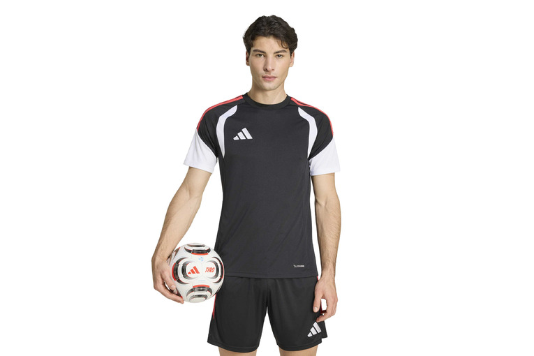Het Tiro 26 League voetbalshirt geeft je spel een professionele look. Ontworpen met een dynamisch silhouet, omhult hij het lichaam met gestroomlijnde inzetstukken die snelheid en precisie uitstralen. Het shirt is gemaakt van interlock-materiaal en voorzien van Climacool-technologie voor ademend comfort. De slim-fit biedt een gestroomlijnd gevoel dat met je meebeweegt voor optimale concentratie. Van warming-up tot fluitsignaal, dit adidas shirt levert strakke stijl en sportieve prestaties voor een actievolle look.