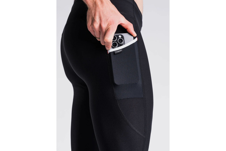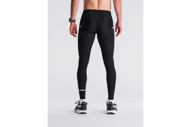 Long Tights hebben een brede heupband met verstelbaar koord en een kleine, beveiligde zak aan de achterkant, evenals de functionele Fusion-zakken op het dijbeen die de inhoud dicht bij het lichaam houden zonder de bewegingspatronen te verstoren.