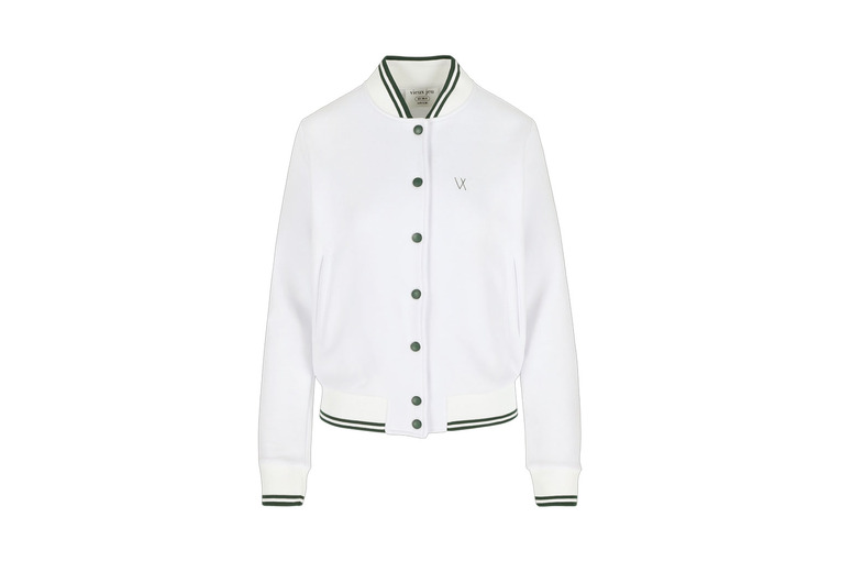 Join the club! Onze Mona Jacket in cr?me is gemaakt van geborsteld katoen om je warm en knus te houden. Het is afgewerkt met gestreepte randen voor een retro-gevoel en geborduurd met de vieux jeu club badge.