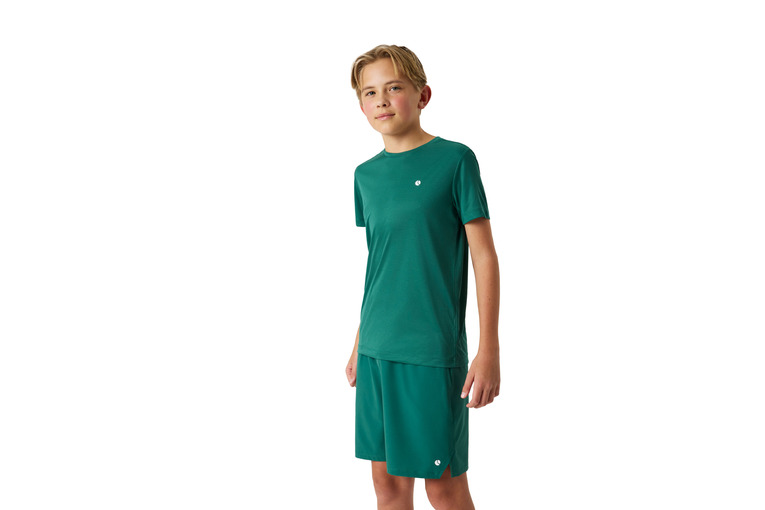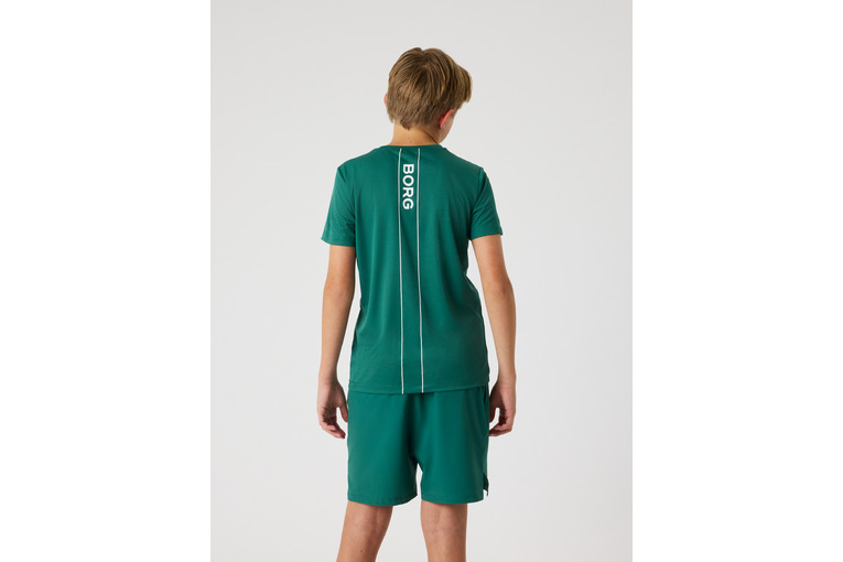 Lichtgewicht trainingsshirt van gerecycled polyester voor tennis of padel. Regular fit met ronde hals en geperforeerde streep. Voorzien van BORG-logo en ACE-baldetail. Verlengde snit voor optimale bewegingsvrijheid bij overhead oefeningen.