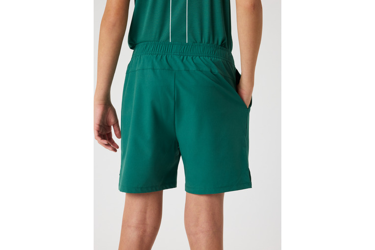 Sportshort voor tennis en padel van gerecycled polyester met elastaan voor flexibele stretch. Regular fit met verstelbaar koord in de tailleband en praktische zijzakken. Splitten aan beide zijkanten voor optimale bewegingsvrijheid.