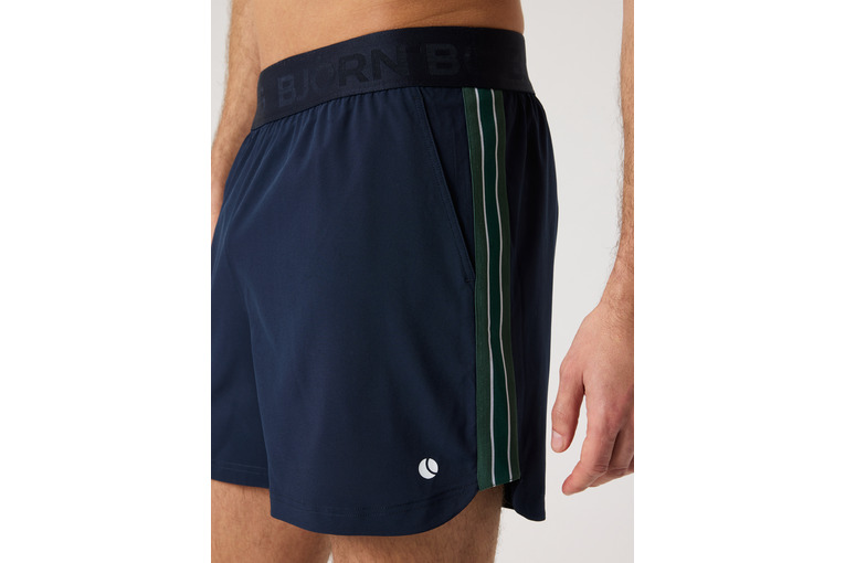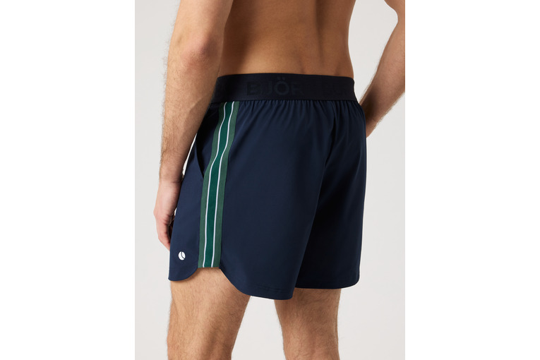 Stijlvolle herenshorts voor tennis of padel van gerecycled polyester met 4-way stretch. Combineert prestaties en retrostijl met sneldrogend comfort, elastische tailleband, zijstrepen en handige zakken.