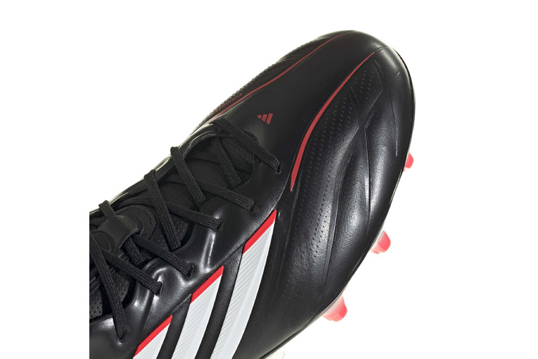 De Copa Pure IV Elite Firm Ground voetbalschoenen combineren traditie met innovatie en bieden klasse op het veld met een focus op comfort, balgevoel en pasvorm. De Fusionskin-technologie zorgt voor een naadloze overgang van leer naar andere materialen voor een zachte touch en een unieke lederervaring. Verder zijn ze voorzien van Comfort Frame: een high-performance lichtgewicht zoolsysteem met een zacht Pebax-frame en een lichte LX-basis. De conische noppen en een extra nop aan de zijkant zorgen voor een betere drukverdeling en grip tijdens rotaties. Met een semi-booty Primeknit-tongconstructie bieden deze kicksen verstelbaarheid, verankering en comfort. De anatomische inlegzool, ontwikkeld in samenwerking met OrthoLite?, is voorzien van open cell foam voor meer slijtagebestendigheid en comfortinzetstukken om de druk op de voetzool te helpen verminderen. Met haptische 3D-prints voor meer balgrip en een loopzool voor droog natuurgras geven deze adidas voetbalschoenen je zelfvertrouwen en controle op het veld.