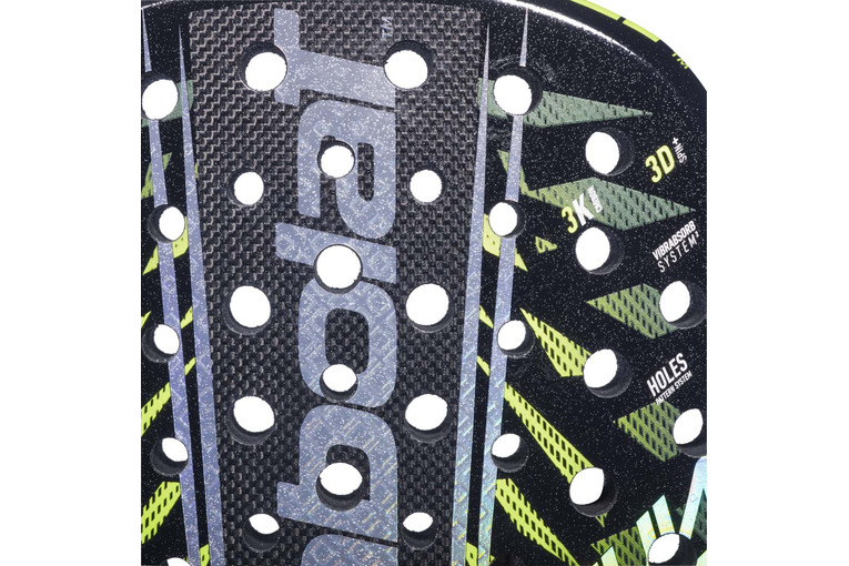 Dit racket heeft een ronde vorm, een design met loodgewicht en geavanceerde technologie?n zoals 3D Spin+ om de spin te verbeteren, het Holes Pattern System om de verdeling van de gaten te optimaliseren en het Vibrabsorb System 2 om trillingen te verminderen.