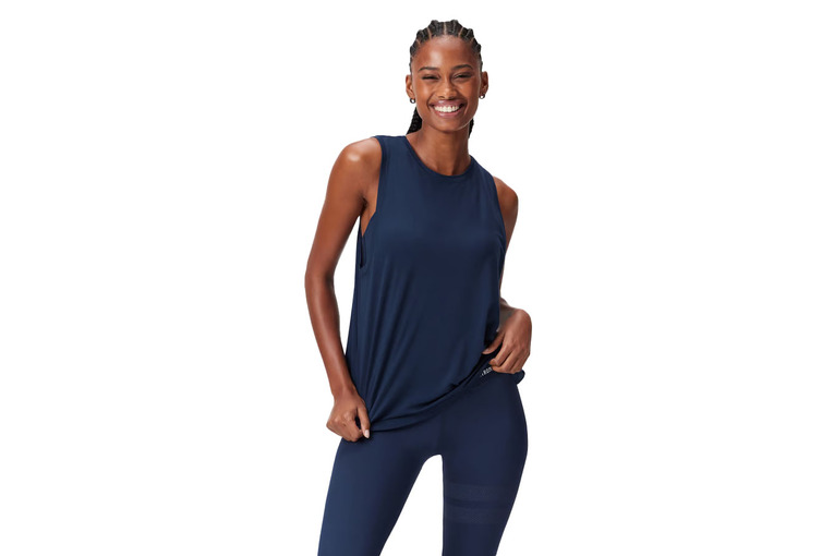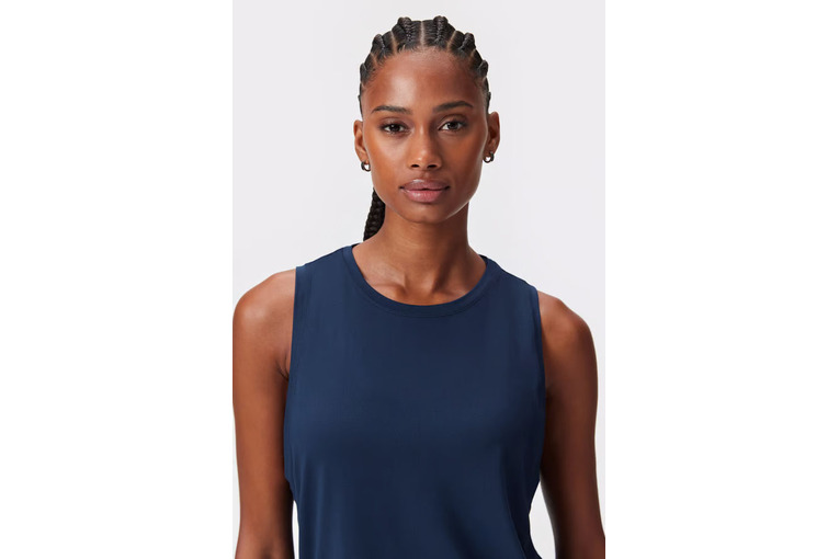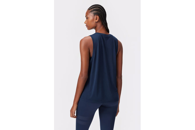 Onze donkerblauwe Relaxed Racerback zorgt voor een comfortabele pasvorm en kan gemakkelijk over een sport-bh gedragen worden. Hij is gemaakt van zacht, zweetafvoerend, sneldrogend en ademend materiaal dat geschikt is voor elk type training. Het ontwerp heeft een afgeronde onderkant voor een flatterende look.