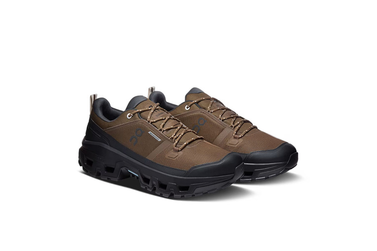 On Cloudrock low waterproof wandelschoen earth/zwart heren