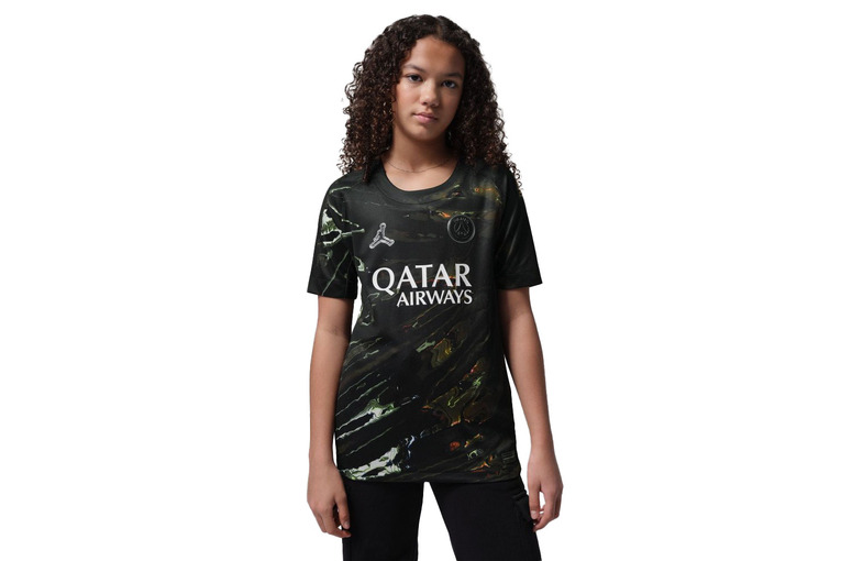 Deze speciale 'Night Edition'-shirt eert de innovatieve geschiedenis van Jordan en PSG met een futuristisch ontwerp dat is ge?nspireerd op Parijs bij nacht. De print toont de lichtstad weerspiegeld in chroom, met vloeiende graphics die vieren hoe deze samenwerking de sport opnieuw vooruit helpt.