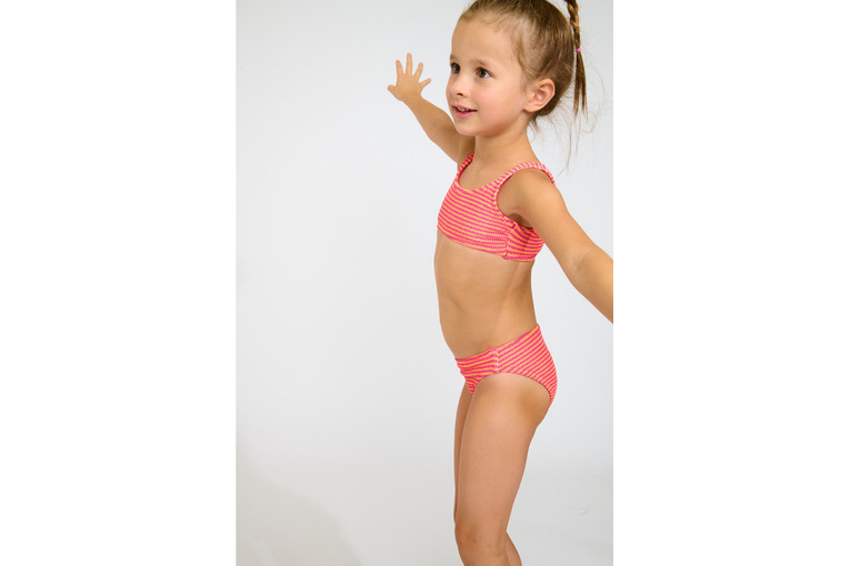 CARTOON BEACHBOP Roze gestreept tweedelig zwempak voor meisjes. Een kleurrijke en vrolijke set, perfect voor zowel het strand als het zwembad. De stof en de pasvorm zorgen voor comfort en duurzaamheid, zodat dit zwempak je dochter de hele zomer lang zal vergezellen.