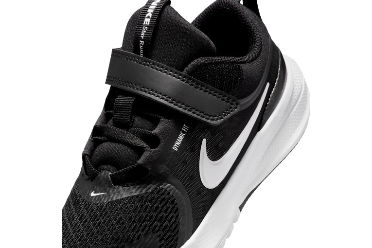 Een Dynamic Fit band omsluit het midden van de voet en zorgt samen met elastische veters voor een stabiel, nauwsluitend gevoel. Een verstelbare klittenbandsluiting helpt kids de schoen goed strak te trekken.