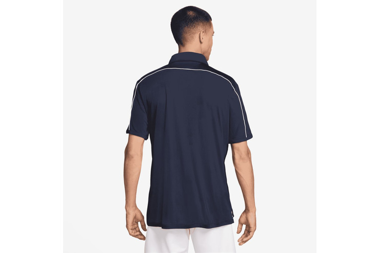 - Het ontwerp met stiksels op de kraag en de biezen op de schoudernaad zorgen voor een frisse, verfijnde look die is geworteld in de geschiedenis van Nike Golf.