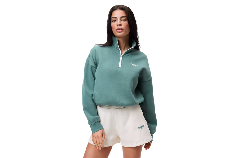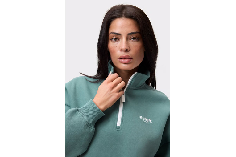 De Half Zip Sweatshirt in Whisper White biedt moeiteloos dagelijks comfort dankzij de losse, ingekorte pasvorm en de knusse, geborstelde binnenkant. Ontworpen voor laagjes, met een halverits, iets verlaagde schouders en decoratieve naden voor een sportieve look; ribgebreide boorden en zoom zorgen voor een veilige, aansluitende feel. Het bedrukte logo aan de voorkant en de grote print op de achterkant maken het design compleet.